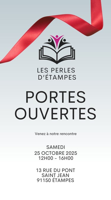 Les Perles d'Étampes a l'honneur de mettre en place une journée porte ouverte le 25 Octobre 2025, de 12h00 à 16h00, pour permettre aux parents la visite de l'établissement et la rencontre de notre équipe de Direction.